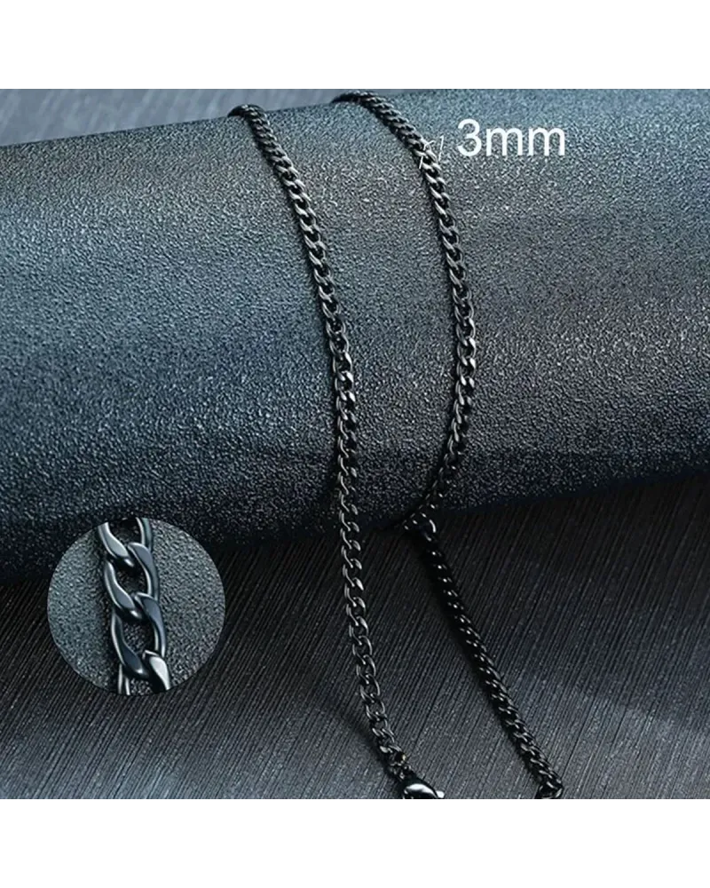 Minimalistyczny czarny łańcuszek o grubości 3 mm to uniwersalna propozycja dla mężczyzn, którzy cenią nowoczesny styl i ponadczasową prostotę. Klasyczny splot o lekko zaokrąglonych ogniwach tworzy spójną, elegancką linię, która dobrze prezentuje się zarówno solo, jak i w połączeniu z zawieszką.