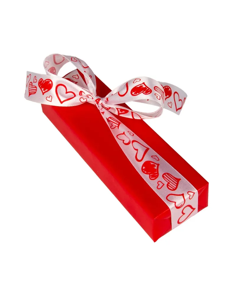 Wyjątkowe opakowanie, które od razu przyciąga uwagę i podkreśla wartość prezentu. Intensywnie czerwone pudełko zestawione z jasną, dekoracyjną wstążką w romantyczny wzór serc tworzy stylowy, kontrastowy efekt – idealny na wyjątkowe okazje.