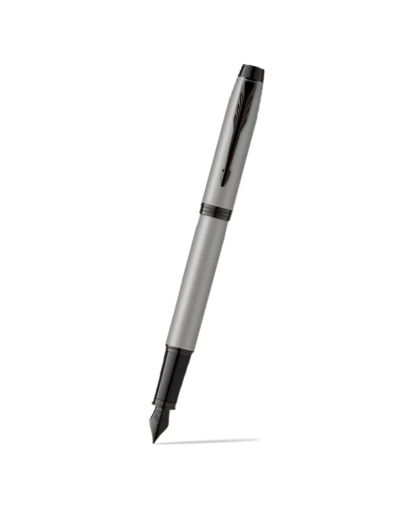 Pióro wieczne Parker IM Achromatic Silver CT (2127619) przyciąga wzrok chłodną elegancją i nowoczesnym charakterem. Jego matowe, srebrne wykończenie idealnie współgra z pozbawioną kontrastu, chromowaną stalówką i klipsem w kształcie strzały – bez logo, bez połysku, za to z klasą.