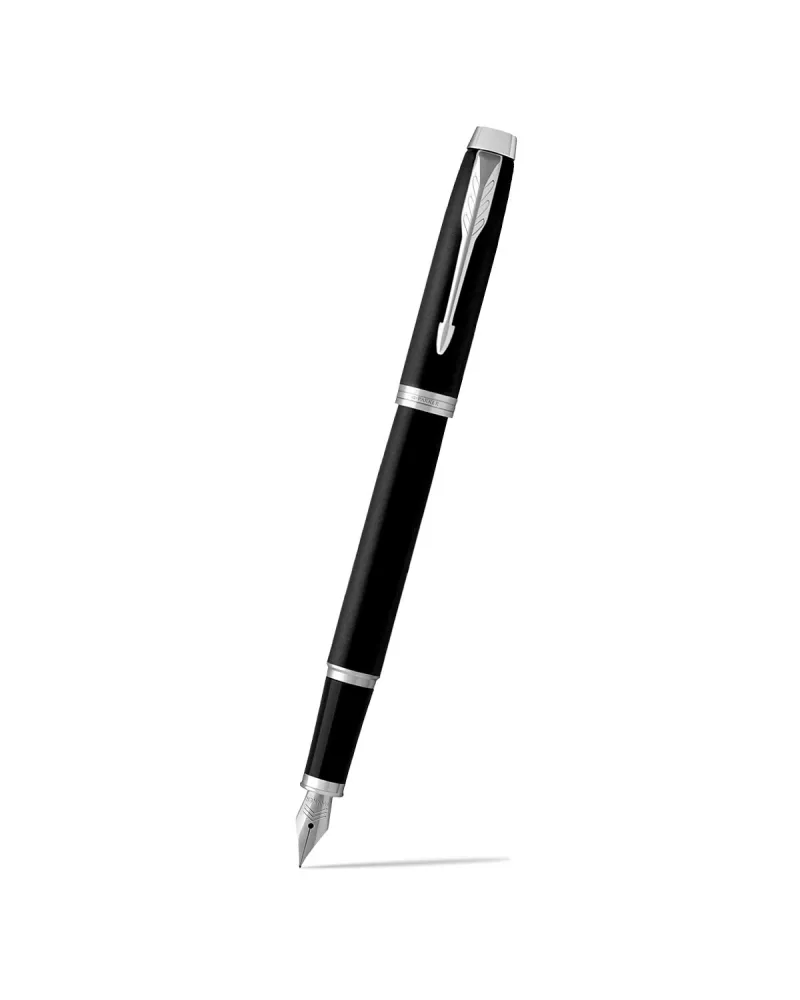 Pióro wieczne Parker IM Matte Black CT w matowym czarnym lakierze z chromowanymi wykończeniami – połączenie klasycznej sylwetki i nowoczesnej, minimalistycznej estetyki.