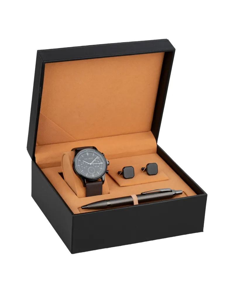 W praktyce ten zestaw daje Ci gotowe rozwiązanie. Masz zegarek, który możesz nosić codziennie, długopis, który zawsze masz pod ręką, i dodatki, które uzupełniają całość. Nie musisz kompletować tego osobno ani zastanawiać się, czy elementy będą do siebie pasować – wszystko jest już spójne wizualnie.