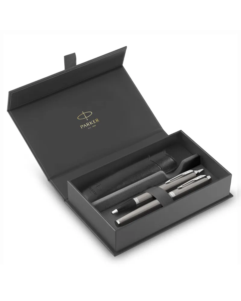 Szykowna prostota, która nie potrzebuje zbędnych ozdobników, by robić wrażenie – tak najtrafniej można opisać zestaw Parker IM w srebrnym wykończeniu z chromowanymi detalami. W jego skład wchodzi pióro wieczne, długopis oraz dedykowane etui, które mieści oba te instrumenty i chroni je podczas transportu. To elegancki komplet o nowoczesnym charakterze, stworzony z myślą o osobach, które cenią użyteczność, ale nie chcą rezygnować ze stylu.