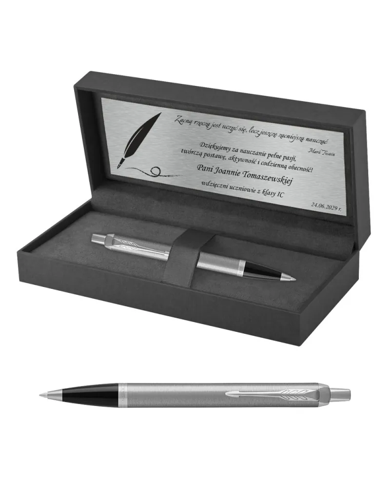 Wdzięczność za codzienny trud, cierpliwość i zaangażowanie nauczyciela najlepiej wyrazić w sposób, który będzie trwały i elegancki zarazem. Słowa podziękowania są ważne, ale jeszcze pełniej wybrzmią, gdy towarzyszy im przedmiot symboliczny – taki, który sam w sobie niesie ładunek szacunku. Długopis Parker IM Stainless Steel CT w pudełku z grawerem to propozycja stworzona właśnie z myślą o takich chwilach. To nie jest zwykły przedmiot do pisania – to starannie zaprojektowany instrument piśmienniczy, który w połączeniu z indywidualną dedykacją zamienia się w wyjątkowy gest.