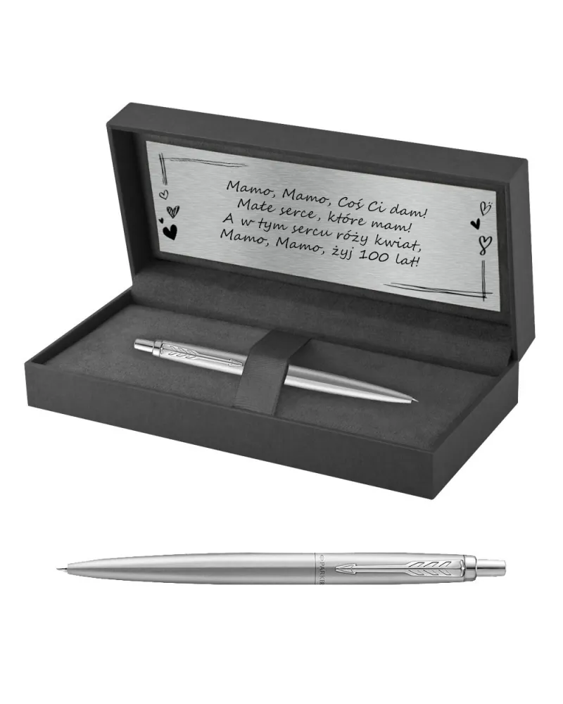 Podsumowując: Parker Jotter XL Monochrome Srebrny w pudełku z tabliczką grawerowaną to propozycja, która łączy elegancję z prostotą. Jego trwała konstrukcja, ponadczasowy design i osobisty akcent w postaci dedykacji sprawiają, że jest to prezent wyjątkowy. To gest, który mama będzie mogła docenić każdego dnia – przy każdej notatce, każdym podpisie i każdym kliknięciu charakterystycznego mechanizmu.