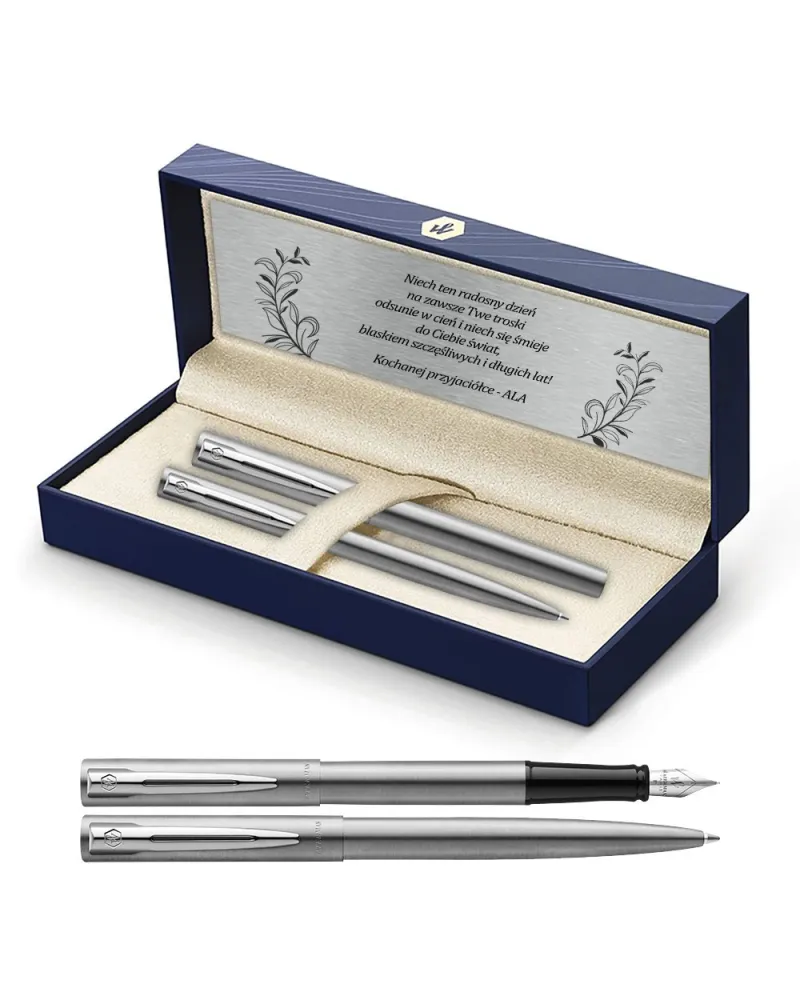 Zestaw piśmienniczy może być czymś znacznie więcej niż tylko praktycznym przedmiotem – może stać się nośnikiem wspomnień, gestem bliskości i formą symbolicznej obecności. Dla przyjaciółki, z którą łączą Cię lata wspólnych rozmów, planów i przełomowych chwil, taki komplet jak Waterman Allure w srebrnym wykończeniu nabiera głębokiego znaczenia. Zwłaszcza gdy uzupełnia go osobista dedykacja, dyskretnie umieszczona na metalowej tabliczce w wieczku opakowania.