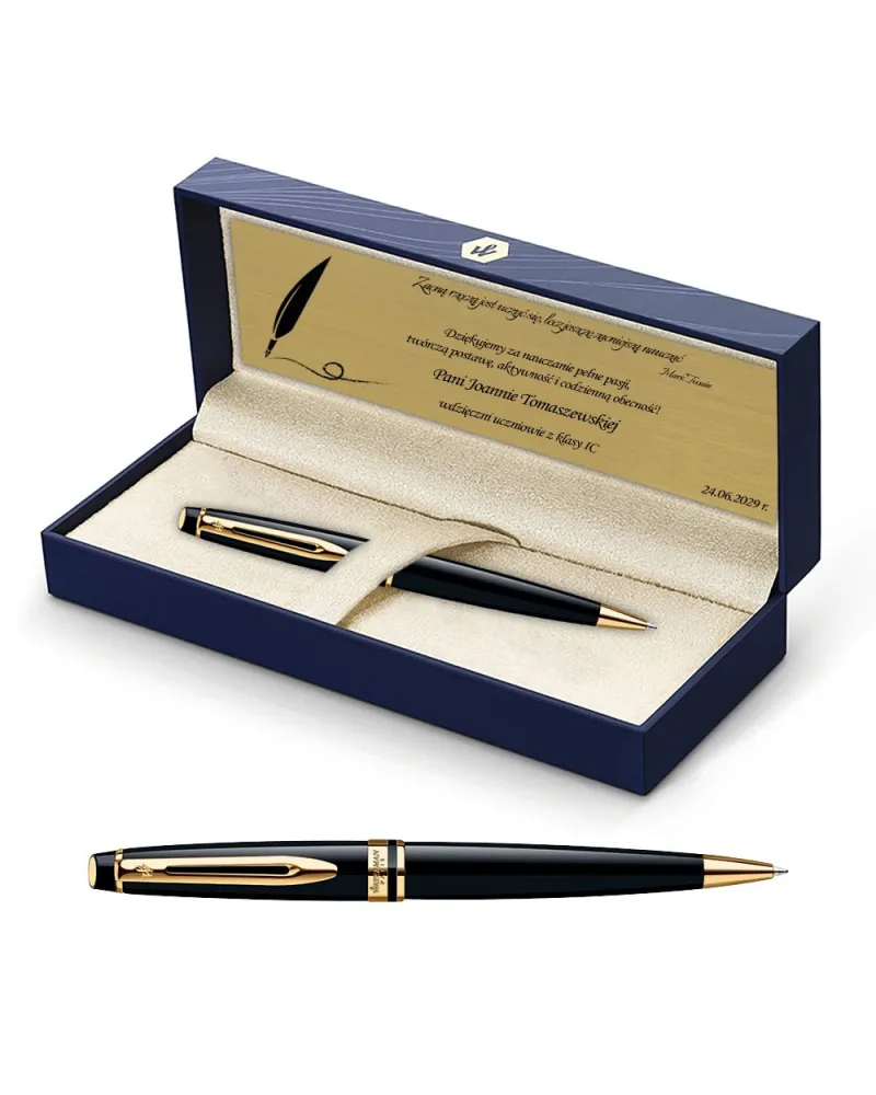 Gdy dziękujemy za trud, zaangażowanie i codzienną obecność, słowa często wydają się niewystarczające. Właśnie dlatego powstał ten zestaw – długopis Waterman Expert w ozdobnym pudełku z grawerowaną dedykacją. To nie tylko elegancki upominek, ale przede wszystkim świadomy, przemyślany gest wdzięczności wobec nauczyciela, który przez cały rok szkolny nie tylko przekazywał wiedzę, ale też kształtował postawy, inspirował i wspierał.