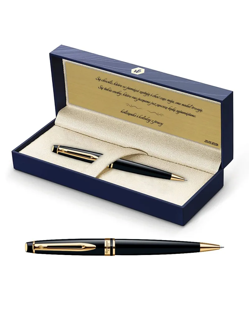 W firmie bywają osoby, których odejście nie kończy się na formalnym podziękowaniu – zostawiają po sobie coś więcej niż stanowisko. Wspomnienia, konkretne chwile i ludzka obecność zapisują się w codzienności zespołu na długo. Długopis Waterman Expert w wersji czarnej z wykończeniami w odcieniu złota, zaprezentowany w eleganckim pudełku z grawerowaną dedykacją, staje się symbolem właśnie takiego odejścia – świadomego, pełnego znaczenia i szacunku.