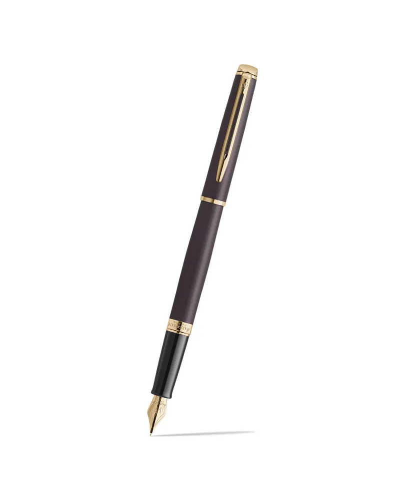Klips w kształcie strzały, pokryty złotem, jest charakterystycznym elementem marki Waterman – rozpoznawalnym od dziesięcioleci. Pierścienie i nasadka również zostały ozdobione jasnym złotem, co nadaje całości wyważonego szyku. Stalówka ze stali szlachetnej, grawerowana literą „W”, łączy trwałość z precyzją. Jej konstrukcja pozwala na równomierny przepływ atramentu, zapewniając stabilną linię podczas pisania. To rozwiązanie dla osób, które cenią prostotę, a jednocześnie chcą mieć pewność, że każdy zapis będzie estetyczny i czytelny.