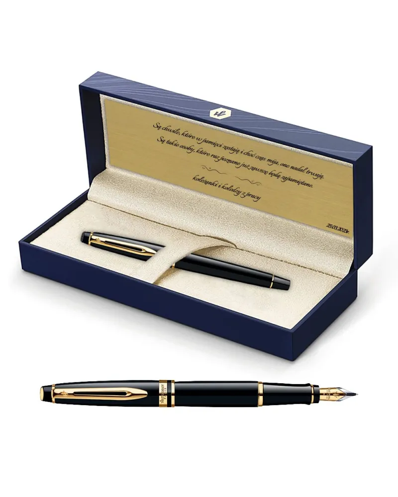 Nie każda relacja kończy się w momencie odejścia z pracy. Są ludzie, których obecność zapisuje się trwale – w atmosferze zespołu, wspólnych projektach, wzajemnym zaufaniu. Dla takich osób nie wystarczy przypadkowy upominek. Pióro wieczne Waterman Expert w wersji czarnej z wykończeniami w kolorze złota, zaprezentowane w eleganckim pudełku z tabliczką grawerowaną, stanowi przemyślany i godny gest – pamiątkę na zakończenie jednego etapu i początek kolejnego.