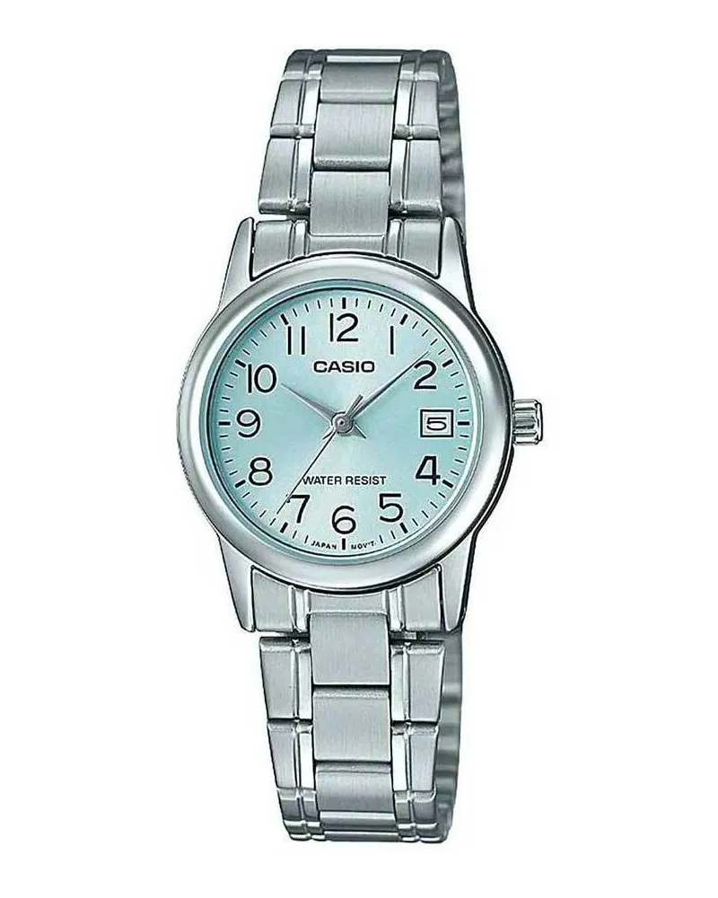 Casio LTP-V002D-2B to idealny wybór dla osób, które poszukują stylowego i niezawodnego zegarka na co dzień. Klasyczna, srebrna koperta wykonana ze stali szlachetnej harmonijnie współgra z oryginalną turkusową tarczą, nadając całemu modelowi elegancki i ponadczasowy charakter.