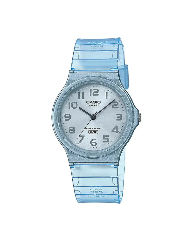Odkryj niezwykłą prostotę oraz lekkość z zegarkiem damskim CASIO MQ-24S-2BEF, który idealnie wpisuje się w modę codziennych stylizacji, dodając im subtelnego, sportowego charakteru. Jego minimalistyczny design zachwyca estetyką i funkcjonalnością, a niebieska koperta z tworzywa sztucznego nadaje mu oryginalnego i kobiecego wyrazu, który doskonale odnajdzie się zarówno w casualowych, jak i sportowych zestawieniach.