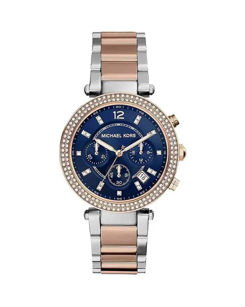 Michael Kors MK6141 posiada przepiękną, niebieską tarczę, która doskonale kontrastuje z indeksami w kolorze rosegold. Koperta w odcieniu rosegold jest dodatkowo zdobiona subtelnymi cyrkoniami, które podkreślają luksusowy charakter zegarka. Bransoleta w kolorze srebrnym z detalami rosegold dopełnia całość, tworząc harmonijną i elegancką kompozycję.