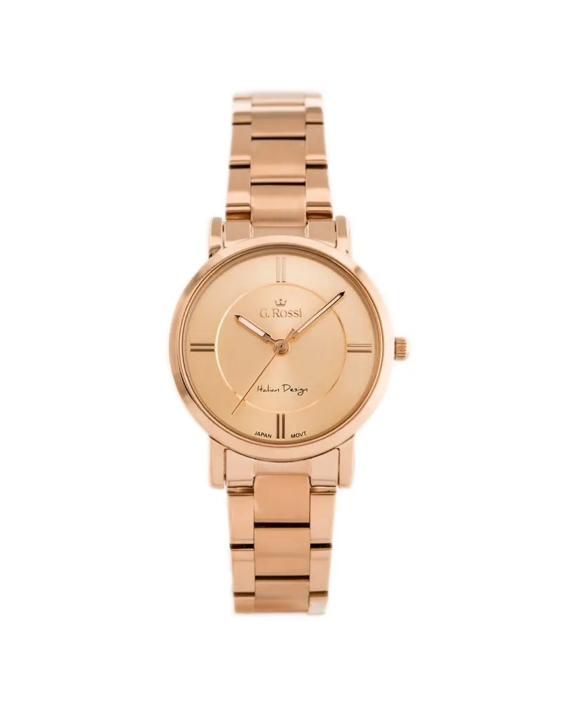 - Tarcza w odcieniu rosegold emanuje subtelnym blaskiem.