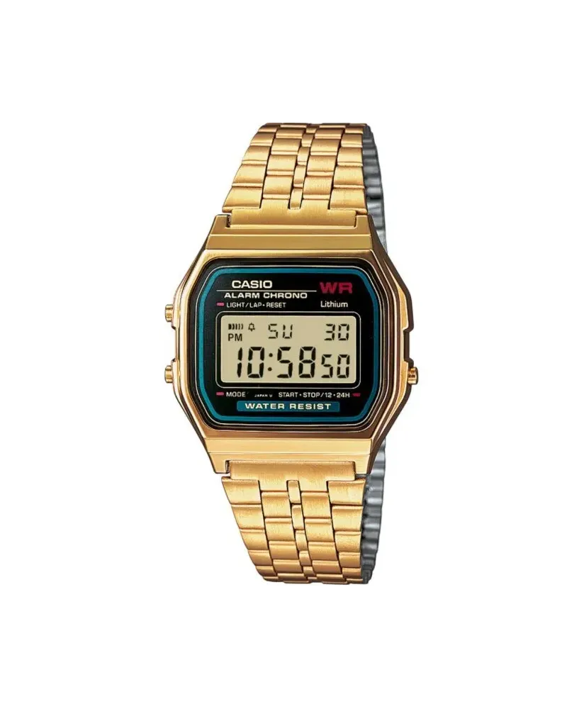 Casio A159WGEA-1EF to stylowy i funkcjonalny czasomierz, który łączy luksusowy wygląd z praktycznymi rozwiązaniami. Jego złota koperta i bransoleta ze stali szlachetnej w połączeniu z czytelnym czarnym wyświetlaczem zapewniają nie tylko wyjątkowy wygląd, ale też komfort użytkowania na co dzień. Dzięki licznym funkcjom, takim jak stoper, alarm, podświetlenie czy kalendarz automatyczny, zegarek stanie się niezawodnym towarzyszem każdej aktywności. Wybierz Casio A159WGEA-1EF i ciesz się perfekcyjnym stylem oraz wysoką jakością w jednym!