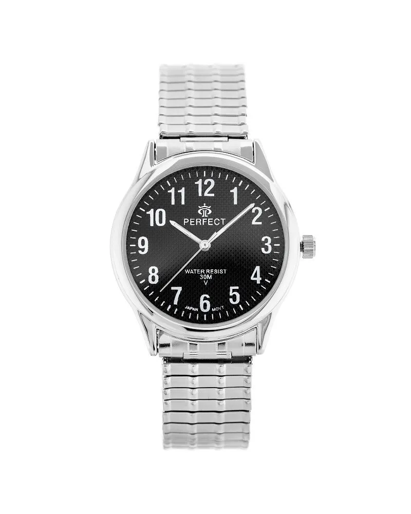 - Elegancka czarna tarcza z czytelnymi białymi cyframi